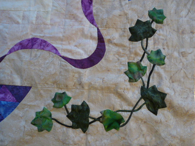 And late yesterday afternoon I discovered the unthinkable. It is like a four-letter word to a longarm quilter. Just gut-wrenching. Yes, (sigh) a pucker or two on the back. My eyes rolled halfway to the back of my head and about 35 obscenities flowed from my lips. If I were not going down diagonals and having unquilted space here and there, this never would have happened. I still have to figure out how to eradicate one of them, even if it means unpicking to the seam on the backing, and concealing the puck there. That means removing a fairly sizeable feather. UGH.