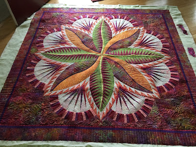 I have to return to getting my teaching goodies ready next, as well as a show quilt that may or may not be ready for MQX. The quilting is still not finished. My personal motivation is largely to blame. I am writing patterns for a couple of quilts - boy who knew how much work that would be?!? You probably think I forgot about the hexagons. Not a chance - They are just about to get the backing pieced so I can have some hand applique to do. I want that quilt ready for the fall shows.